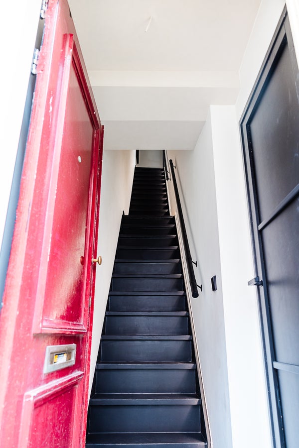 Attraverso le scale si accede all'ingresso della casa al secondo piano.