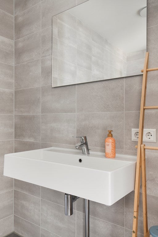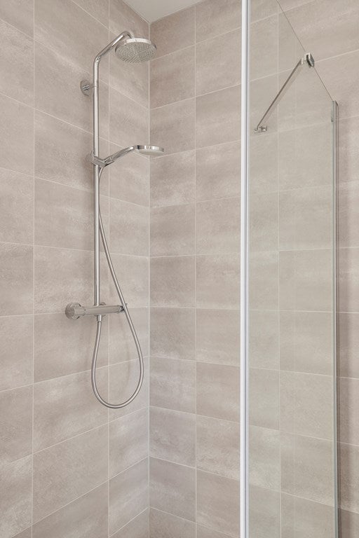 La camera da letto è situata sul lato dell'edificio e ha anch'essa una vista sull'acqua. Il bagno è elegante e moderno, con lavabo, wc e doccia walk-in. Inoltre, c'è una lavanderia separata, un guardaroba/ripostiglio pratico all'ingresso e un'unità di stoccaggio esterna nel seminterrato.