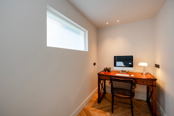 Attraverso il soggiorno si accede a un ufficio accogliente.
