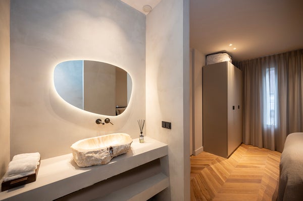 Ci sono due ampie camere da letto, ognuna con un bagno completamente attrezzato. Dalla camera da letto principale si affaccia sul bellissimo giardino interno. Il bagno annesso a questa camera è dotato di una deliziosa vasca da bagno freestanding, WC, lavandino e doccia a filo (con effetto pioggia).