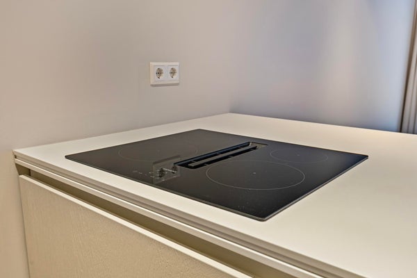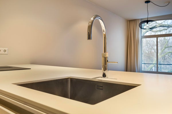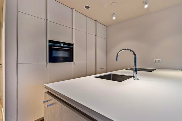 - Cucina aperta, dotata di elettrodomestici moderni: lavastoviglie, piano cottura a induzione, forno/microonde combinato, frigorifero, congelatore e Quooker.
