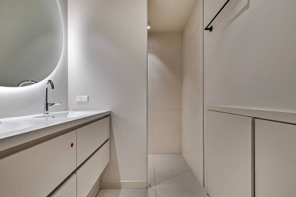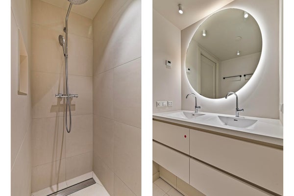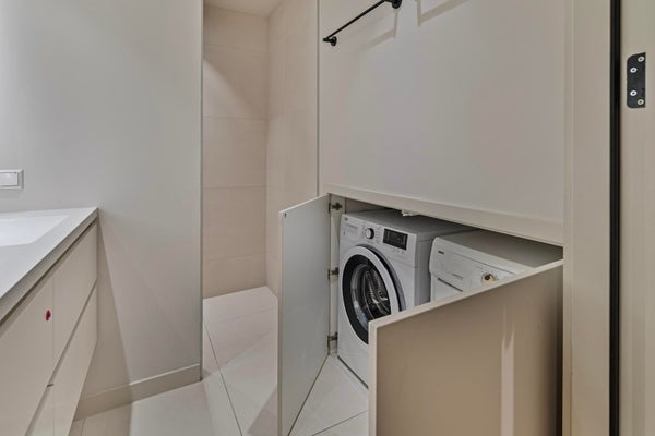 - Bagno con ampia doccia, doppio lavabo, lavatrice e asciugatrice, e riscaldamento a pavimento.
