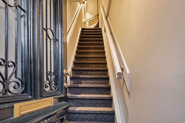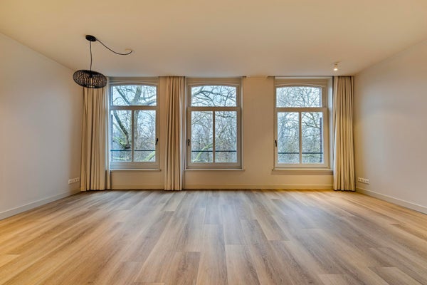 - Ingresso con accesso al luminoso soggiorno con tre finestre e vista su Sarphatipark.