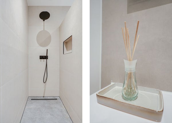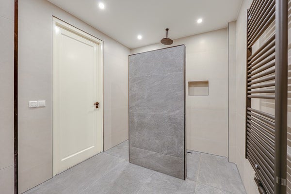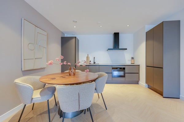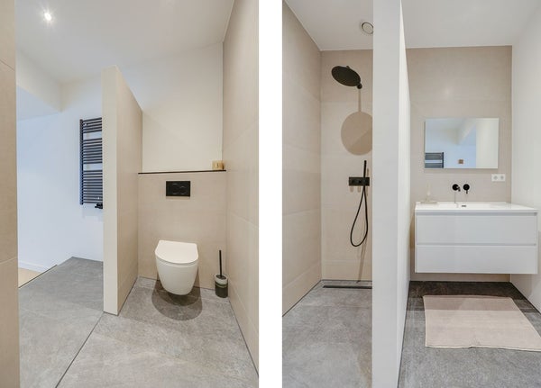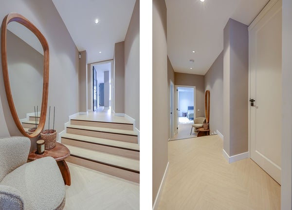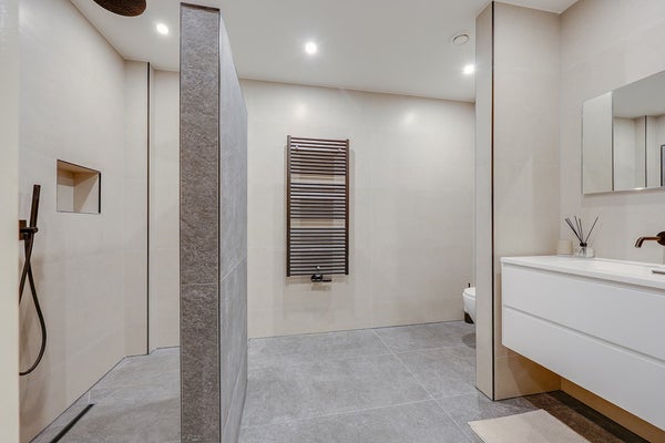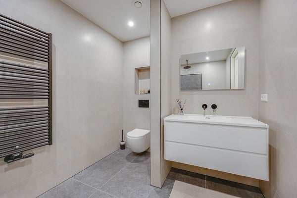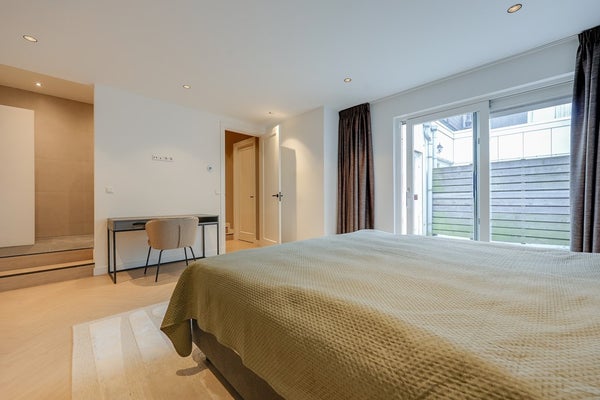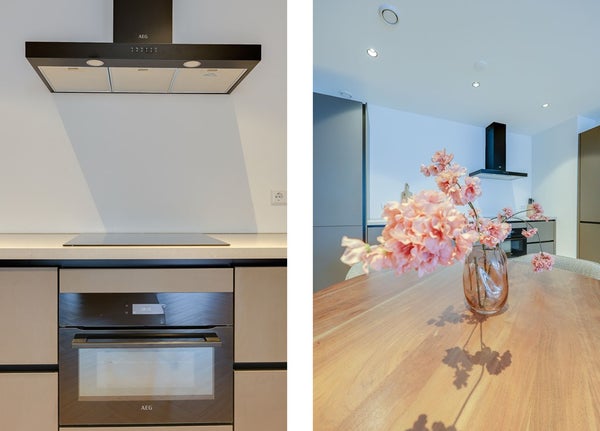 L'appartamento è stato completamente ristrutturato e presenta finiture moderne di alta qualità in tutto. Ingresso, bagno moderno. Spazioso soggiorno con un bellissimo pavimento a spina di pesce e una lussuosa cucina aperta in antracite opaco, attrezzata con elettrodomestici a incasso di alta qualità. La prima sala da bagno dispone di una grande doccia a pioggia con finiture moderne. La spaziosa camera da letto principale dispone di un bagno privato con doccia a pioggia, lavabo e WC. La seconda camera da letto è anch'essa molto spaziosa. Il patio/terrazza si trova sul retro ed è accessibile tramite porte scorrevoli da entrambe le camere da letto.