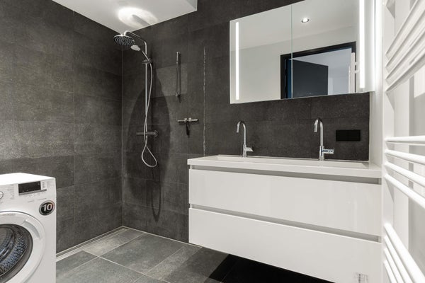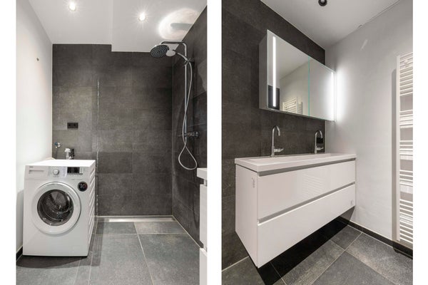 Camera da letto separata con bagno en-suite dotato di doccia walk-in, doppio lavabo, lavatrice e radiatore per asciugamani. Servizio igienico separato.