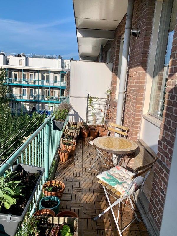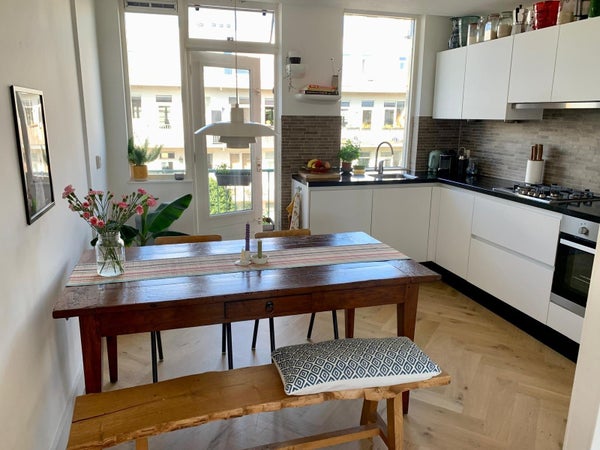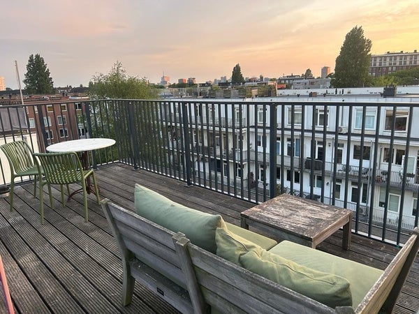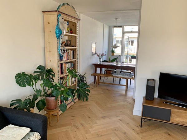 Eccezionale casa doppio piano LUMINOSA al 3° e 4° piano, che offre 2 camere da letto più spazio per ufficio e una SOLEGGIATA spaziosa terrazza sul tetto nel bellissimo Amsterdam Est!