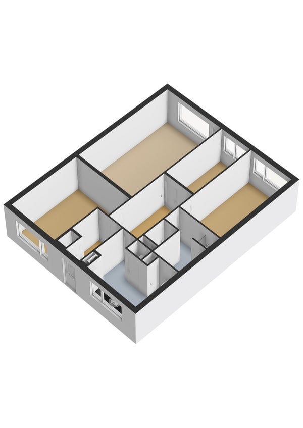 Ingresso centrale al piano terra. Attraverso la galleria si accede alla casa. Ingresso, corridoio centrale con accesso a tutte le stanze. Il luminoso soggiorno si trova sul retro dell'appartamento e dà accesso al balcone (ovest), a due camere da letto, a una cucina chiusa con vari elettrodomestici, a un bagno con doccia separata, lavabo e vasca da bagno. L'appartamento è dotato di un bagno separato con lavabo. Nella sottostruttura del complesso si trova il locale di deposito per (bici).