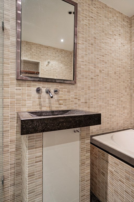 Il bagno è dotato di doccia, lavabo e una deliziosa jacuzzi per il relax.