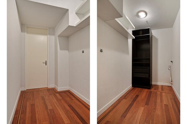 Ingresso, ampio bagno moderno con lavabo, ripostiglio con collegamenti per lavatrice e asciugatrice.