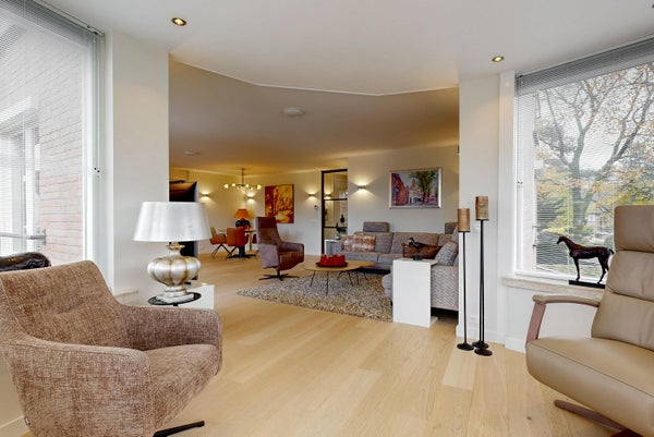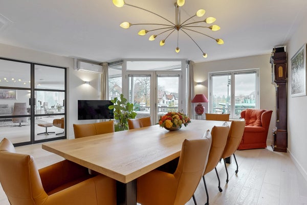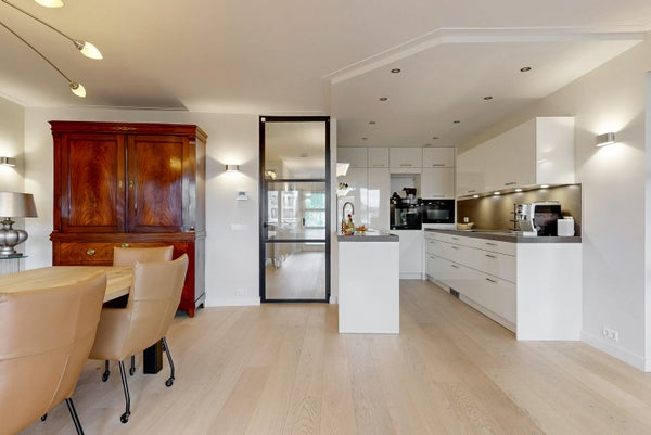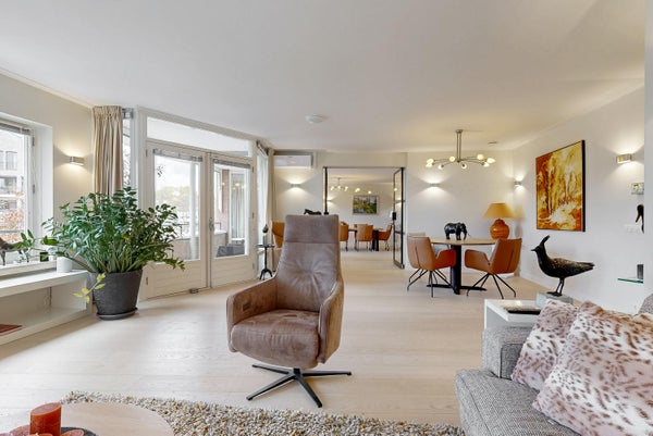 Questo spazioso appartamento con cinque stanze (214 m²) è situato nel centro di Bilthoven, con vista su Vinkenplein. Situato al primo piano, combina finiture di lusso con spazi abitativi confortevoli. Il soggiorno di 97 m² include una sala da pranzo separata e una cucina aperta di lusso dotata di elettrodomestici Miele, inclusi piano cottura a induzione e forni doppi. Ci sono quattro camere da letto e due bagni eleganti. L'appartamento dispone di due balconi e di una grande terrazza privata di 57 m², che aggiunge spazio esterno. Inoltre, ci sono due ripostigli interni e opzioni di parcheggio. Nonostante la posizione centrale, l'appartamento offre tranquillità e privacy, con negozi e mezzi pubblici a pochi passi.