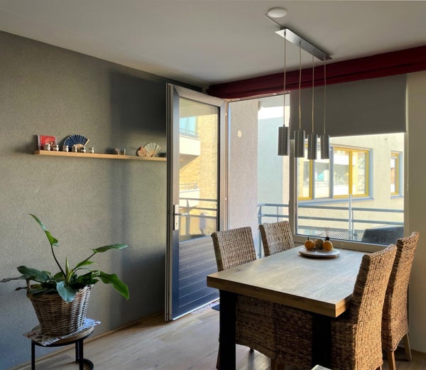 Entriamo dentro! L'entrata è spaziosa e qui troverai il quadro elettrico, il WC con lavandino e l'accesso a entrambe le camere da letto. Ma prima ti portiamo nel soggiorno luminoso sul davanti. Grazie alle grandi finestre e alla bella illuminazione, questo spazio si sente immediatamente piacevole. La cucina moderna, aperta in tonalità grigio antracite eleganti, è dotata di tutti i comfort: lavastoviglie, forno combinato/microonde, frigorifero, cappa di aspirazione e piano cottura a induzione. Adiacente, troverai un ripostiglio pratico con ripiani, una lavatrice, un congelatore e spazio per un'asciugatrice. Dal soggiorno, puoi accedere direttamente al balcone soleggiato esposto a sud, un luogo ideale per goderti il sole fino a tardi con una tazza di caffè o un buon bicchiere di vino. Il bagno è moderno, arredato con una doccia a pioggia, un mobile lavabo e un secondo WC. Sul retro si trova la spaziosa e luminosa camera matrimoniale con un'ampia armadiatura. La seconda stanza è ideale come ufficio, camera per gli ospiti o spazio hobby, a seconda delle tue esigenze.