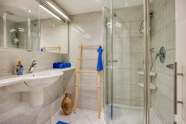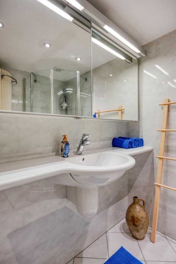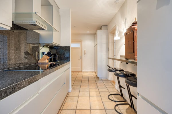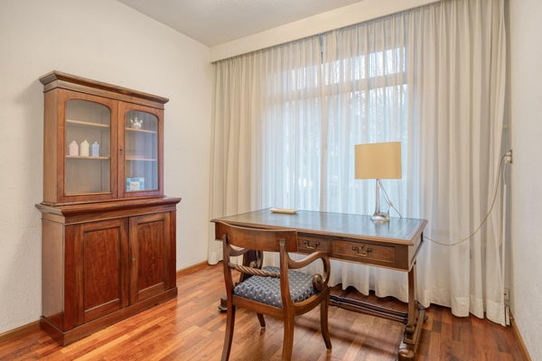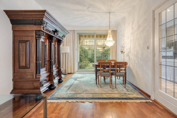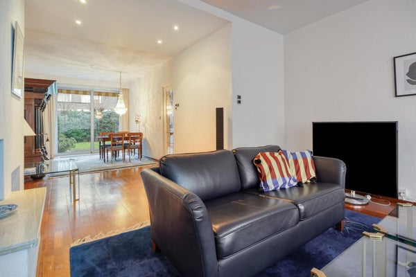 Layout: Ingresso centrale con cassette postali e interfono. Entrata dell'appartamento al piano terra. Ampio corridoio che porta alla cucina semi-aperta. La cucina è dotata di un bel piano a contatto con la luce naturale e di apparecchiature Siemens. Compresi piano cottura a induzione, cappa aspirante incorporata, forno a microonde combinato, combinazione frigorifero/congelatore, lavastoviglie. Soggiorno luminoso con porte-finestra che danno sul giardino. Considerata l'esposizione al sole, è anche bello ristare all'ombra grazie alla tenda da sole elettrica.
