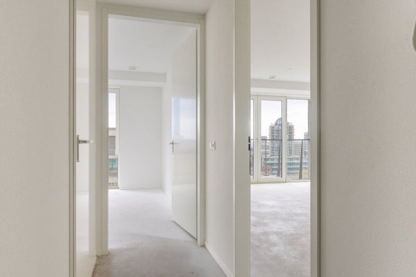 Nel Wijnhavenkwartier, nel cuore dell'Aia, puoi trovare 132 appartamenti di lusso che vanno dai 71 ai 164 metri quadrati. Queste abitazioni si trovano dal quinto al ventesimo piano e sono rifinite con materiali di alta qualità. Ogni appartamento presenta un ampio soggiorno con accesso a un balcone, da una a tre camere da letto e un bagno e cucina moderni dotati di elettrodomestici ATAG. Il complesso dispone anche di un ripostiglio privato e di un garage, dove puoi affittare un posto auto, se disponibile. Il tutto si trova a pochi passi dalla stazione centrale, dallo Spui e da famosi punti di interesse come il Binnenhof e il Palazzo Noordeinde, mentre la vasta spiaggia sabbiosa del Mare del Nord si trova a circa sei chilometri di distanza.