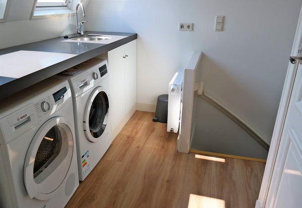 Quando raggiungi il 2° piano, arrivi prima su un pianerottolo. Dal pianerottolo hai accesso alla camera da letto, al bagno e a un 2° bagno. La camera da letto è molto spaziosa e, come il soggiorno, dotata di un bow-window e porte-finestre. Nella camera da letto c'è una 2° TV, e di nuovo è presente un condizionatore d'aria. Dalla camera hai accesso alla cabina armadio con abbondante spazio per l'armonia. Il bagno ha una doccia e un mobile lavabo. Lo specchio è riscaldato e dotato di illuminazione. Al 3° e ultimo piano ci sono la lavatrice e l'asciugatrice. Inoltre, c'è una spaziosa 2° camera da letto dotata di un lussuoso divano letto e una scrivania. Questa stanza extra può quindi essere utilizzata come studio o camera per gli ospiti. Da questa camera c'è anche un ampio armadio a muro con molto spazio per riporre.