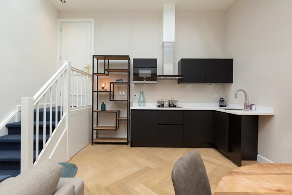Bellissimo e completamente ristrutturato appartamento arredato situato nel centro storico suggestivo. Con una spaziosa camera da letto e un meraviglioso bagno, è piacevole tornare a casa qui. Puoi anche cucinare splendidamente nella cucina a vista. Il centro è un quartiere vivace molto apprezzato dai giovani professionisti. È conosciuto per le sue piacevoli strade dello shopping e piazze, piene di bar e ristoranti. Il Palazzo della Pace e il Palazzo Noordeinde si trovano anch'essi in questo quartiere.