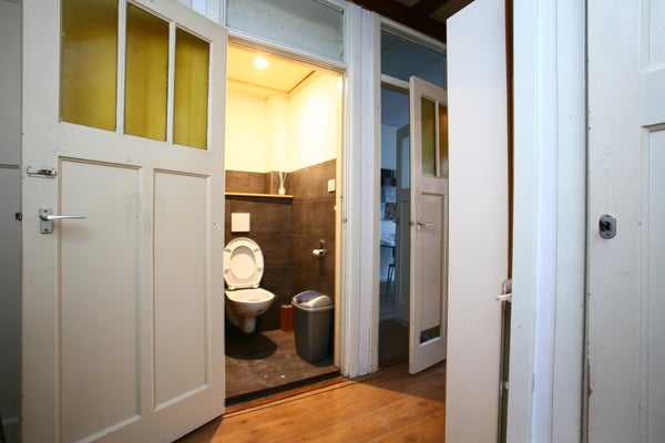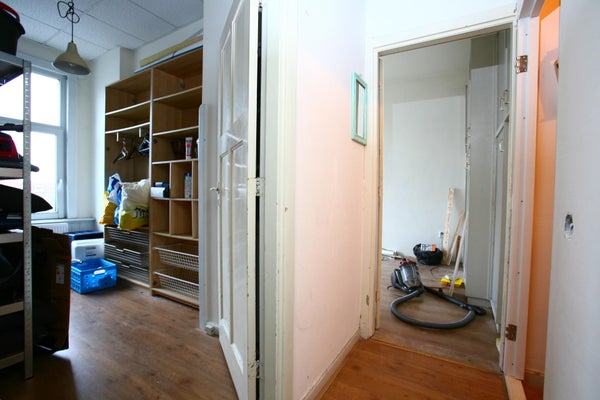 Dalla strada, accedi all'armadio con i quadri elettrici tramite le scale. La scala in legno ti porta al tuo appartamento situato al 2° piano. Attraverso lo spazio comune con accesso ai servizi igienici, alle camere da letto, alla cucina e al soggiorno, hai a disposizione un ampio appartamento con un balcone sul retro che si estende per tutta la lunghezza dell'appartamento. I vicini al piano superiore accedono al loro piano tramite le scale nello spazio comune.