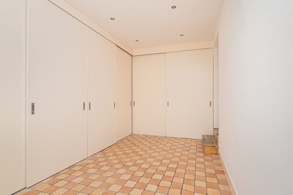 L'ingresso della casa si trova al piano terra. Scale portano al primo piano, dove si arriva in un corridoio che fornisce accesso all'ampia zona giorno e pranzo, caratterizzata dall'altezza dei soffitti per cui la zona è ben nota. Adiacente all'area soggiorno c'è una stanza extra aperta, ideale da usare come ufficio o studio. Il corridoio fornisce anche accesso a un bagno separato.