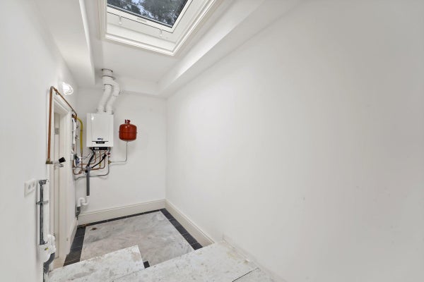 Dal soggiorno si accede a due stanze che possono essere utilizzate come ripostiglio e a un grande locale lavanderia con finestra sul tetto. Il soggiorno offre anche accesso a una cantina che può essere utilizzata come ulteriore spazio di stoccaggio.