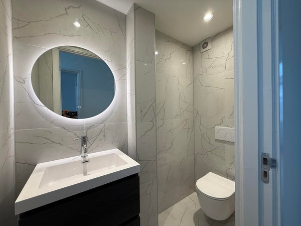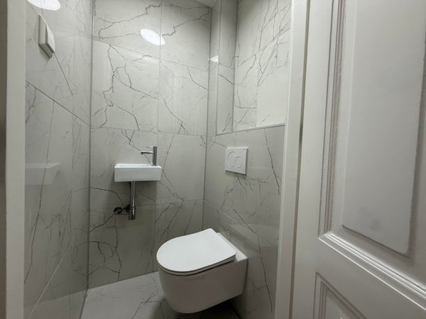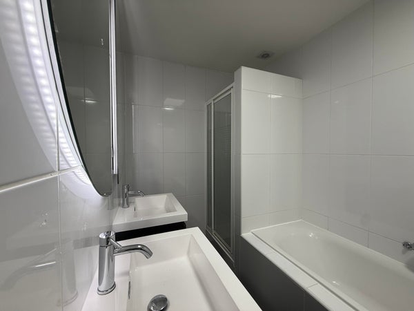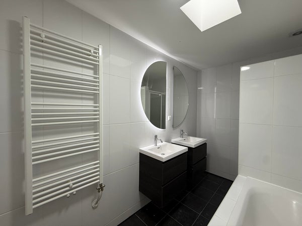 Il moderno e spazioso bagno centrale (3.48 x 1.82) è dotato di vasca da bagno, doccia separata, doppi lavandini e un radiatore per asciugamani. Sul retro si trova una spaziosa camera da letto (4.20 x 3.04) con accesso a un grande balcone, così come una quarta camera (3.54 x 2.44).