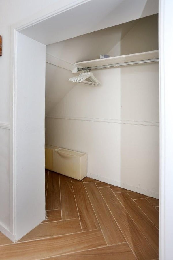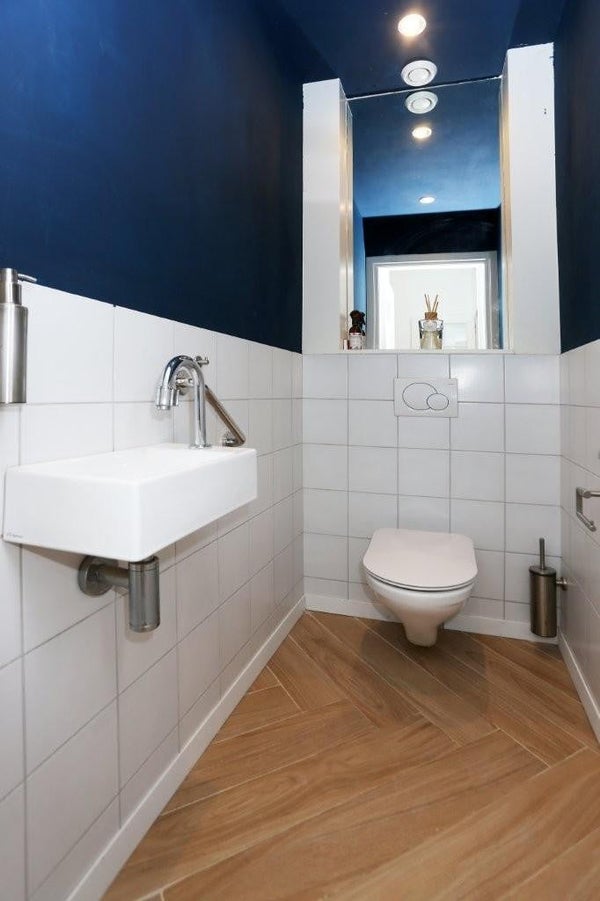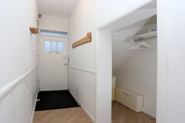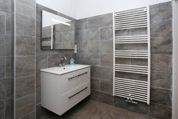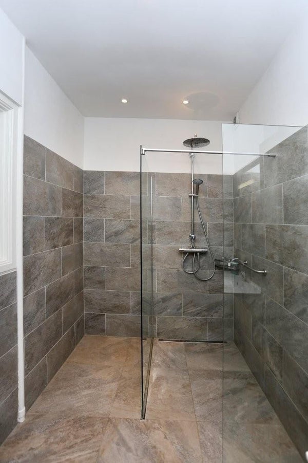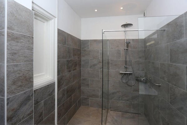 La camera matrimoniale si trova sul retro e offre accesso al giardino. La seconda camera si trova sul lato anteriore. Il bagno è moderno e dispone di una grande doccia a filo pavimento, un lavabo con 2 cassetti sottostanti, uno specchio e un scaldasalviette.