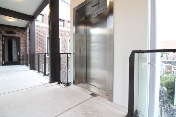 Ingresso centrale con cassette postali e ascensore. I residenti del complesso possono anche utilizzare un deposito per biciclette comune.