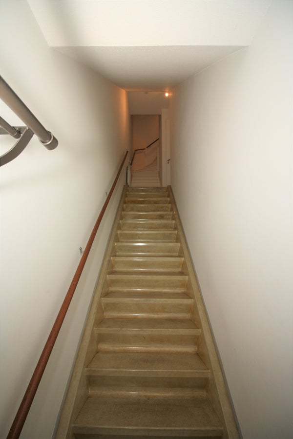 Ingresso privato con armadietto dei contatori e scala per il primo piano.
