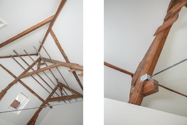 Con la scala fissa, raggiungi la landing del secondo piano. Su questo piano ci sono due ampie camere da letto e un piccolo ripostiglio. La camera da letto anteriore ha una superficie di circa 13 m² e quella posteriore è di circa 10 m².
