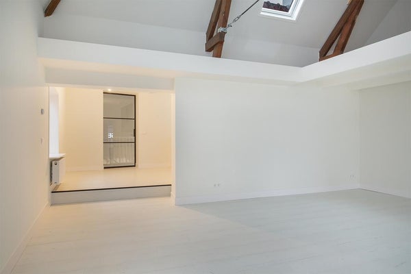 Dalla cucina, si passa al soggiorno spazioso di circa 30 m² con un bellissimo soffitto alto a travi. Seduto nel soggiorno, guardi lungo la Lange Vorststraat, una delle più belle strade dello shopping della città.
