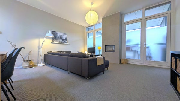 Entrando, si arriva a un ampio corridoio condiviso, che è condiviso con un altro appartamento. Qui c'è anche spazio per parcheggiare una bicicletta. Il soggiorno è luminoso e spazioso ed è in diretta connessione con la cucina di lusso. A questo si aggiungono un locale di servizio e un corridoio che fornisce accesso a un bagno separato, un bagno di lusso e una camera da letto spaziosa. Dalla camera da letto si accede a un giardino soleggiato esposto a sud-est con vista sulla Martinitoren.