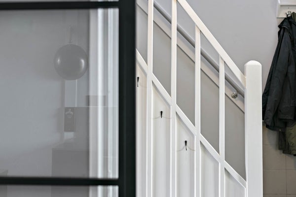 1° piano: galleria con spazio di deposito. Il corridoio spazioso offre accesso al WC, alla scarpiera e al grande soggiorno con cucina aperta moderna attrezzata con tutti gli elettrodomestici incassati richiesti (microonde, forno, lavastoviglie, cappa aspirante, piano cottura a gas a 5 fuochi con bruciatore wok). Nel soggiorno e in cucina è presente un pregiato parquet laminato a spina di pesce di alta qualità e arredamento completo e attrezzatura da cucina. Al secondo piano, accanto al corridoio, troviamo 3 camere da letto di buone dimensioni (circa 13m2 - 12m2 - 7m2), di cui una è dotata di armadio. L'aggiunta di mobili nelle altre camere è possibile ad un sovrapprezzo. Il bagno è dotato di doccia, mobile lavabo e apparecchi bianchi. Infine, la camera da letto sul retro dà accesso al balcone esposto a ovest.