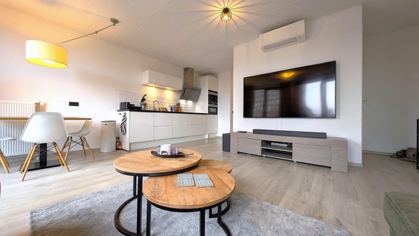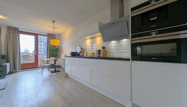 Benvenuti in questo appartamento di alta qualità e completamente arredato nella vivace città di Groningen. All'ingresso troverete una cucina moderna e finemente rifinita, dotata di tutti i comfort contemporanei. Questo include una macchina da caffè di lusso incorporata, elettrodomestici moderni e ampie possibilità di stoccaggio. Il soggiorno è dotato di una grande TV e arredamento elegante ed è, come il resto dell'appartamento, dotato di aria condizionata, splendidi pavimenti e un balcone.