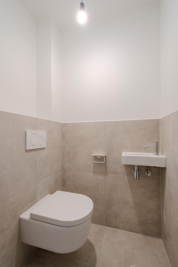 La finitura è di alta qualità. Gli appartamenti sono dotati di un pavimento in PVC a spina di pesce con riscaldamento a pavimento in tutte le stanze. La cucina è completamente attrezzata con elettrodomestici da incasso: piano cottura, forno combinato, lavastoviglie, cappa aspirante e frigorifero-congelatore. Il bagno è elegantemente rifinito con una vasca, una doccia walk-in, un doppio lavandino e un radiatore per asciugamani. Ulteriori spazi di archiviazione sono disponibili nel ripostiglio e nella soffitta, dove sono posizionati anche gli impianti.