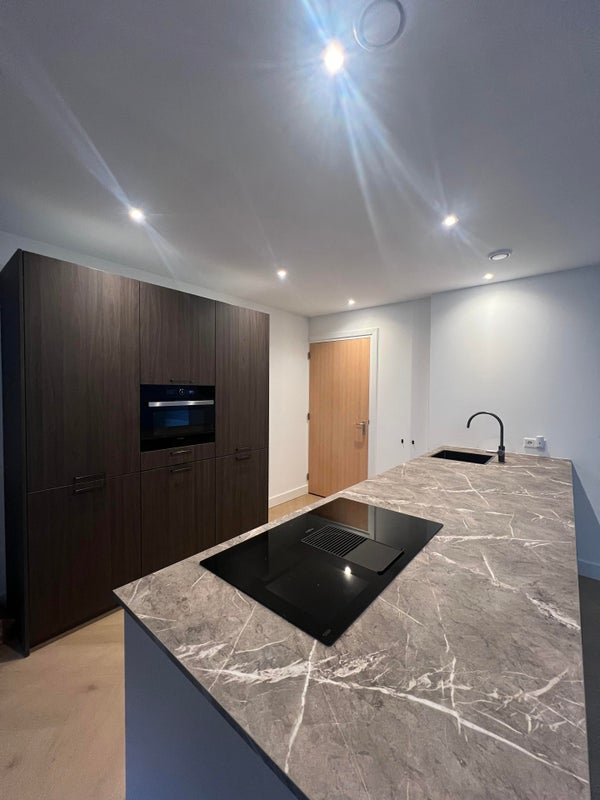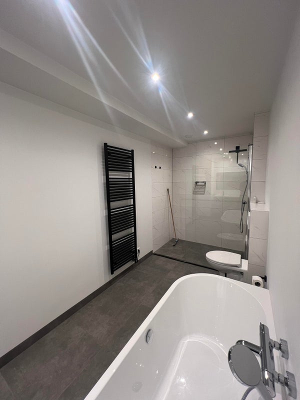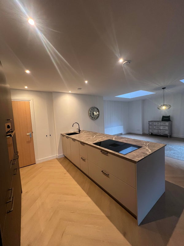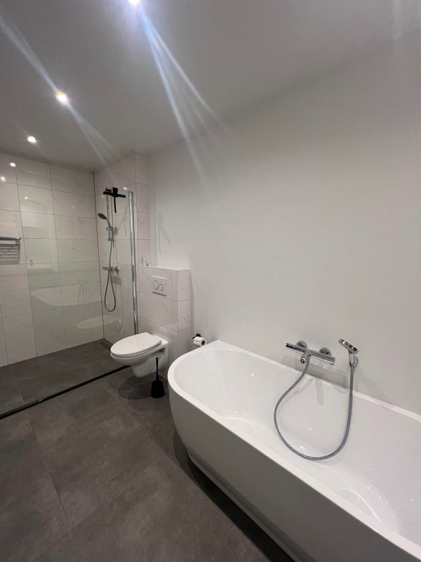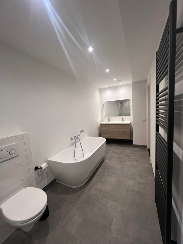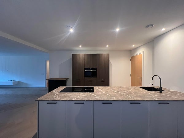 L'appartamento dispone di una disposizione pratica con un luminoso e spazioso soggiorno, una cucina aperta e 3 camere da letto spaziose. Le grandi finestre garantiscono molta luce naturale e un piacevole comfort abitativo. La cucina è dotata di un'isola con i seguenti elettrodomestici da incasso: piano cottura in ceramica a 4 fuochi, cappa aspirante, forno combinato/microonde, frigorifero, congelatore e lavastoviglie. Anche il bagno è nuovo e di lusso, ed è dotato di vasca da bagno, doppio lavabo, ampia doccia a pioggia, 2° bagno e radiatore per asciugamani.