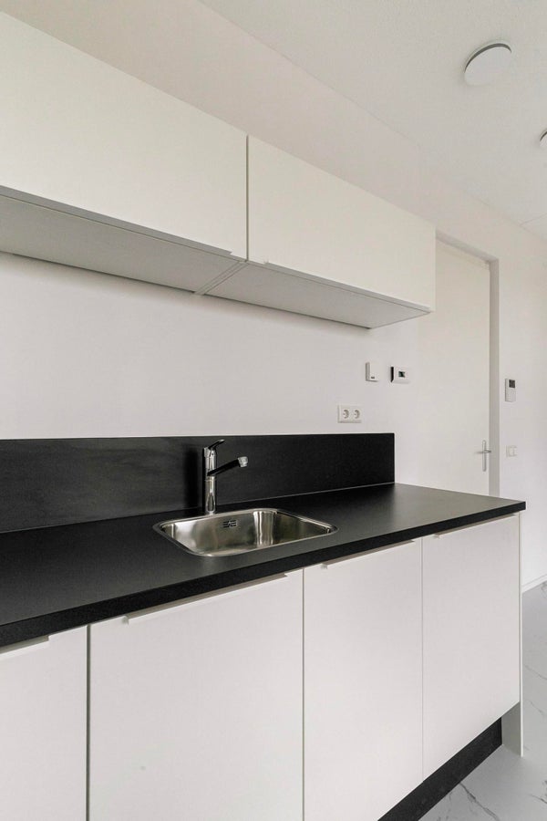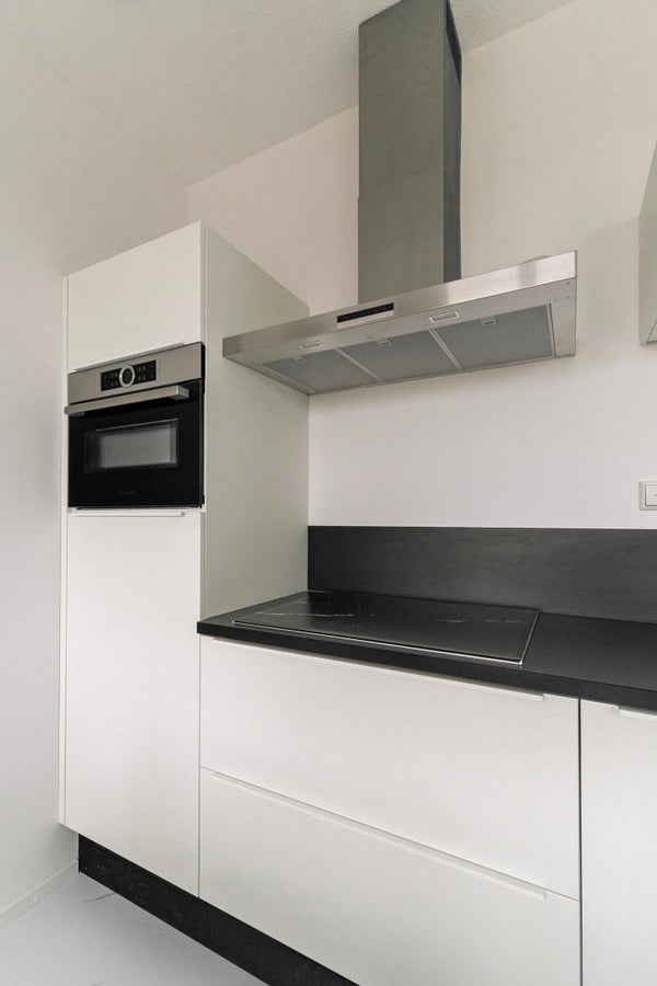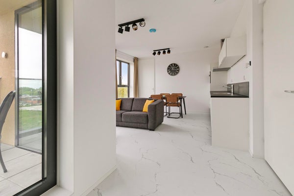 L'intero appartamento ha un pavimento in marmo bianco che lo rende molto moderno e luminoso. Il soggiorno/sala da pranzo si apre sulla cucina a vista. La cucina è dotata di tutti gli elettrodomestici da incasso, come un piano cottura a induzione, una cappa aspirante, un forno combinato, una lavastoviglie e un frigorifero con congelatore separato. Dal soggiorno si accede a un ampio balcone, orientato a nord/ovest.
