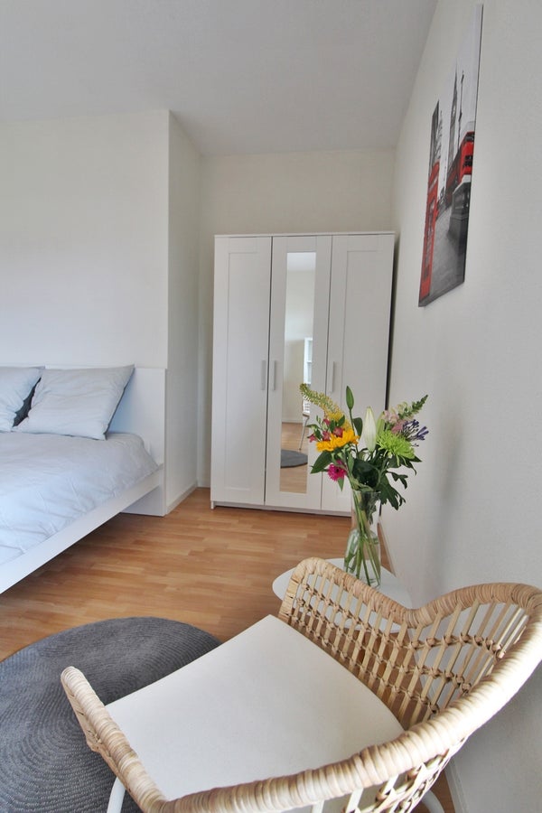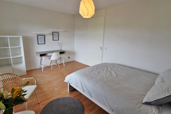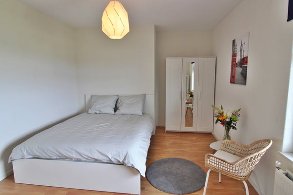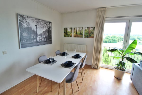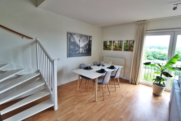 Very spacious 3-room maisonette house (126 m2). This furnished house is located on the 4th and 5th (top) floor of apartment complex "Silo 1". On the ground floor of this complex there is a (private) storage room for bicycles. Parking space is available around the entire complex (with permit). Despite the quiet location, the house is ideally located near shops, schools, bus stops and roads.