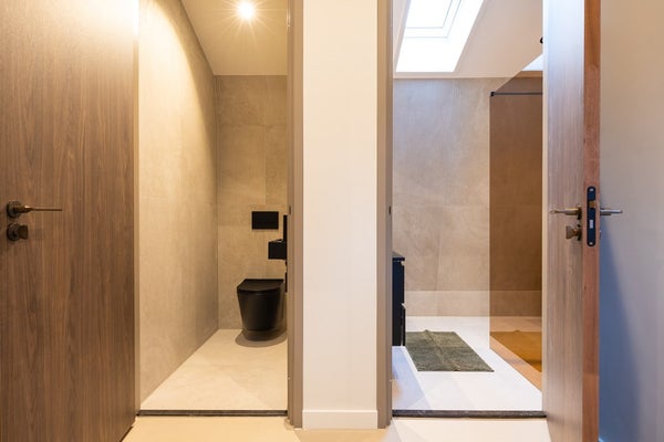 Inoltre, c'è un bagno ben curato con doccia a filo pavimento e lavandino, una toilette separata e uno spazio esterno pratico accessibile da una delle camere da letto - perfetto per sedersi all'aperto in tutta tranquillità.