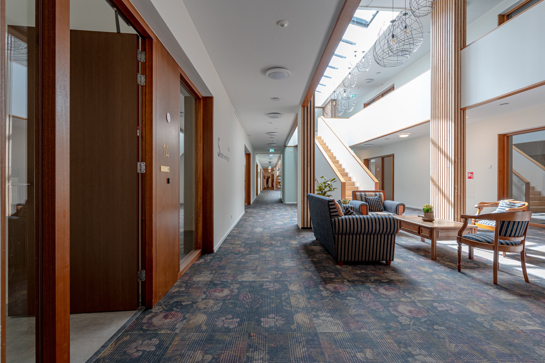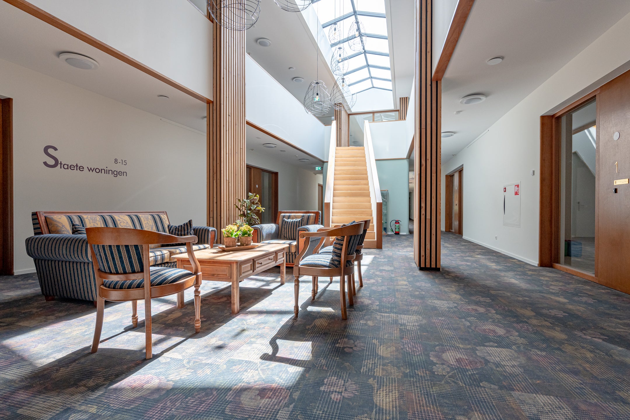 Questo appartamento in affitto fa parte di un complesso completato nel 2020, composto da 31 abitazioni Staete di diverse dimensioni. Ogni appartamento offre una superficie abitativa minima di 80 m², con alcune opzioni fino a 107 m². Gli appartamenti sono arredati in modo lussuoso, completamente isolati e dispongono di una terrazza o balcone privato di circa 17 m². Al piano terra c'è un'area centrale comune e un caffè accogliente per i residenti. La disposizione comprende un ampio soggiorno, una cucina aperta con elettrodomestici moderni, due camere da letto e un bagno curato. C'è anche un giardino comune e un deposito biciclette. Questo appartamento è perfetto per chi cerca di vivere in modo autonomo con una leggera esigenza di assistenza. L'affitto varia da 2150 a 2850 € al mese, a seconda dell'appartamento e dei servizi.