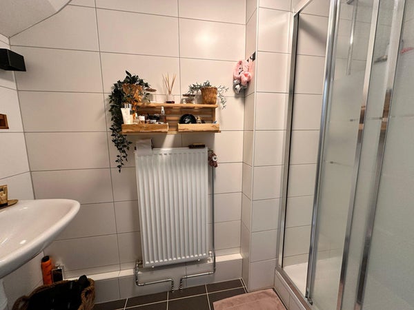 Appartamento su due piani con un soggiorno luminoso e una moderna cucina aperta dotata di elettrodomestici da incasso. Bagno con doccia e wc nello stesso piano. La camera da letto si trova al piano superiore. Inoltre, c'è un ripostiglio con attacco per lavatrice.