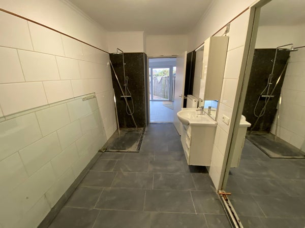 - Bagno spazioso dotato di: doccia a pavimento, mobile da bagno e allaccio per lavatrice