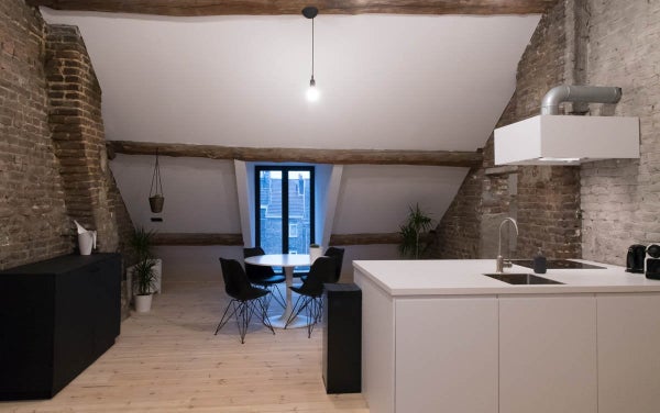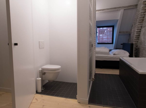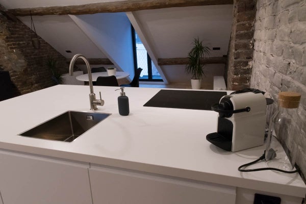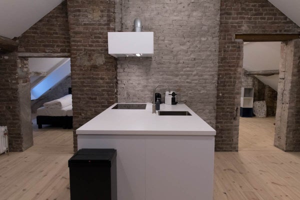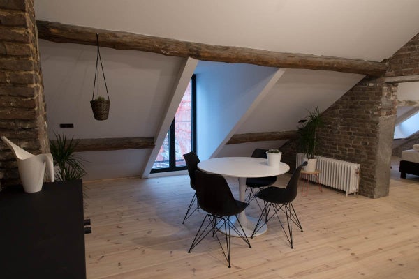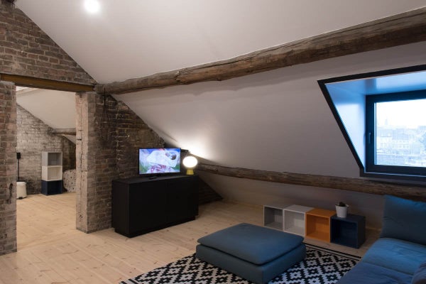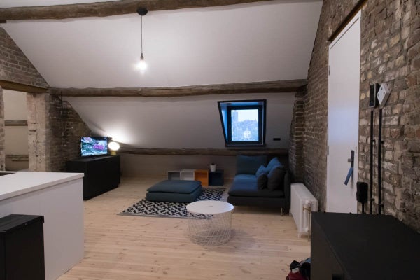 Questo appartamento mansardato di 60m2 è molto spazioso e ha una bella vista sul Maas e sul centro di Maastricht. È presente una cucina completamente attrezzata con piano cottura a induzione, cappa aspirante, frigorifero con congelatore, forno combinato e lavastoviglie.