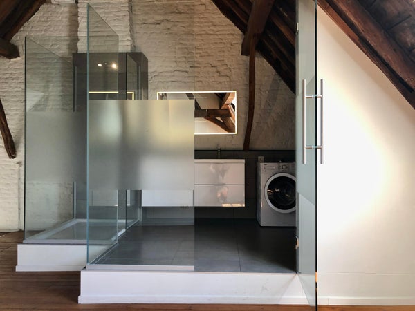 L'appartamento è distribuito su due piani. All'ingresso, entri in un luminoso soggiorno con una disposizione gradevole e accesso diretto alla cucina. La cucina è dotata, tra l'altro, di un piano cottura a induzione, un forno combinato, un frigorifero e una lavastoviglie.