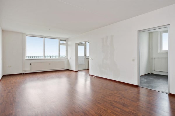 Situato al quattordicesimo piano del complesso residenziale "Sterflat" di quindici piani in Via Regia, questo appartamento è composto da due camere da letto, un balcone e un posto auto sul parcheggio sovrastante.