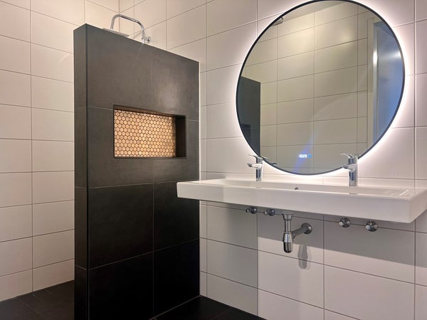 Da un corridoio si accede alle due ampie camere da letto, al bagno finito in modo moderno con doccia a tutta altezza, mobile lavabo e radiatore di design. Toilette separata con lavandino e un pratico locale tecnico dove puoi trovare le connessioni per i bianchi e spazio di archiviazione extra.