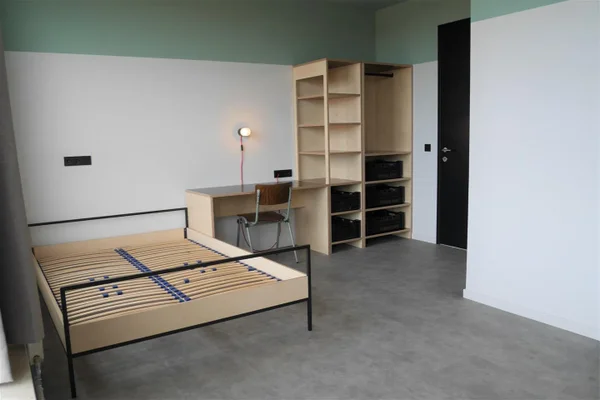 Studio arredato di lusso nel moderno complesso universitario 'Wauwhaus'. Lo studio è dotato di un letto matrimoniale (140x210cm), moderno bagno privato, lussuosa cucina open space (inclusi elettrodomestici), spazioso armadio e ripostiglio, scrivania con sedia e internet ad alta velocità. Lo studio è situato al 4° piano (lato sud). Vedi la piantina per la posizione esatta nel complesso.