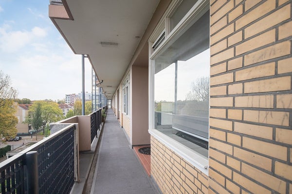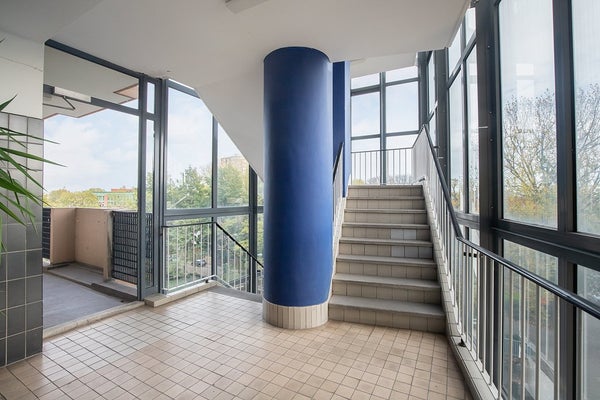 Questo appartamento attraente e di generose dimensioni si trova al 5° piano di un edificio ben mantenuto e offre un ambiente abitativo luminoso con un balcone esposto a sud/ovest. Dal soggiorno e dalle camere da letto, puoi godere di una vista aperta sulla città e di un incantevole stagno circondato dal verde. La combinazione ideale di vita urbana e ambiente naturale.