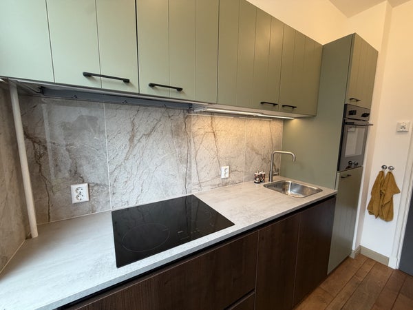 frigorifero, microonde, forno e sufficiente spazio di archiviazione.