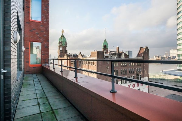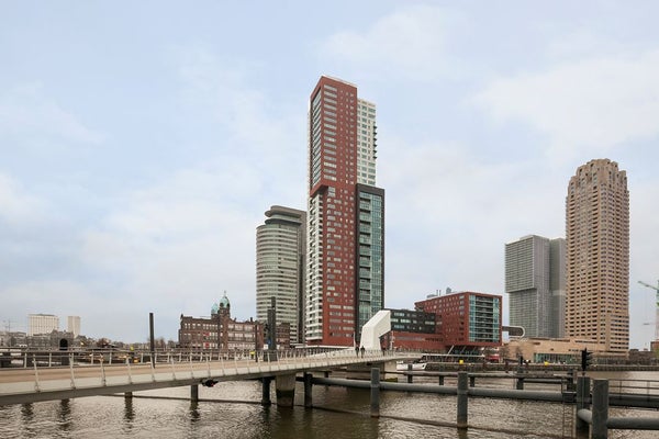 Appartamento in affitto: arredato, al 5° piano, soffitti alti, 2 camere da letto, situato nell'edificio Montevideo al Wilhelminapier. Con una vista mozzafiato sul fiume Maas e sul ponte, a pochi passi dai mezzi pubblici e a distanza ciclabile dal centro città.