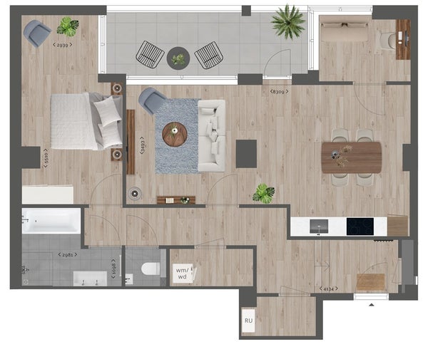Il bagno è moderno e spazioso, dotato di una doccia a pioggia a pavimento, vasca da bagno, lavabo con specchio e radiatore per asciugamani. Il WC è separato e comprende un piccolo lavandino. Una camera di stoccaggio privata con una combinazione di lavatrice/asciugatrice è accessibile dal corridoio.
