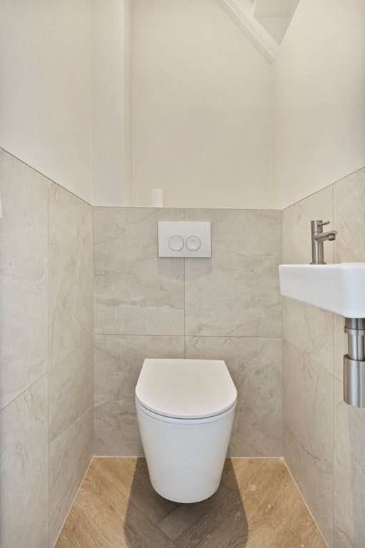 Il wc con piccolo lavandino si trova a questo piano ed è stato completamente ristrutturato. C'è anche un armadio a muro con attacco per lavatrice, accessibile dal corridoio.