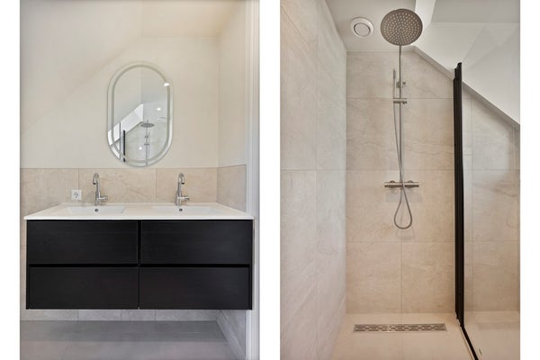 Attraverso le scale si accede al 3° piano. Qui troverai due ampie camere da letto e un moderno bagno. Una camera da letto è situata sul lato soleggiato ed è dotata di aria condizionata, garantendo una camera da letto piacevolmente fresca anche durante i mesi estivi più caldi. Entrambe le camere offrono spazio sufficiente per un letto matrimoniale e armadi.